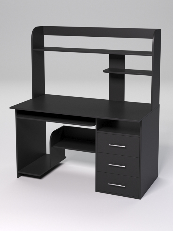 Офисный компьютерный стол подойдет для организации рабочего места и комфортной работы оператора, менеджера, делопроизводителя, секретаря. Стол оборудован полкой под клавиатуру, подставкой под системный блок, полкой для хранения, тремя выдвижными ящиками, надстройкой с полками.