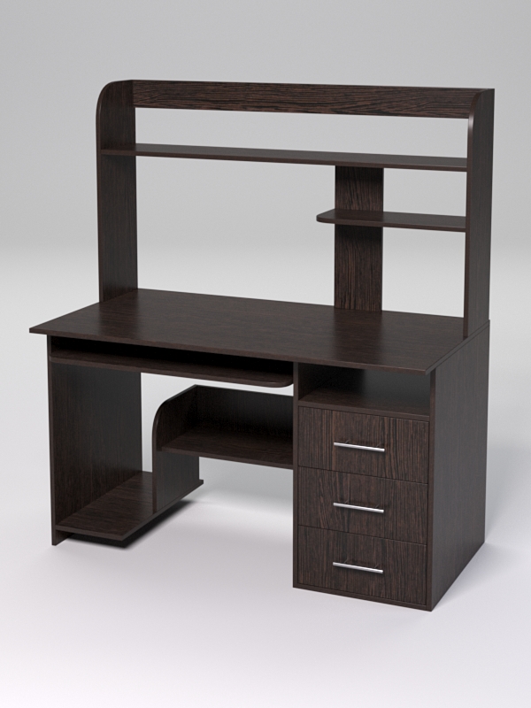 Офисный компьютерный стол подойдет для организации рабочего места и комфортной работы оператора, менеджера, делопроизводителя, секретаря. Стол оборудован полкой под клавиатуру, подставкой под системный блок, полкой для хранения, тремя выдвижными ящиками, надстройкой с полками.
