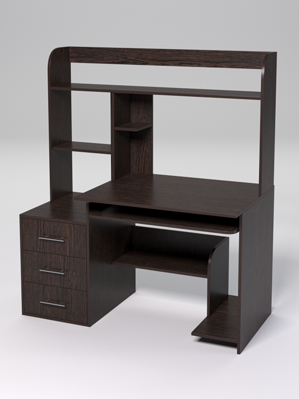 Офисный компьютерный стол подойдет для организации рабочего места и комфортной работы оператора, менеджера, делопроизводителя, секретаря. Стол оборудован полкой под клавиатуру, подставкой под системный блок, тумбой с тремя выдвижными ящиками, надстройкой с полками.