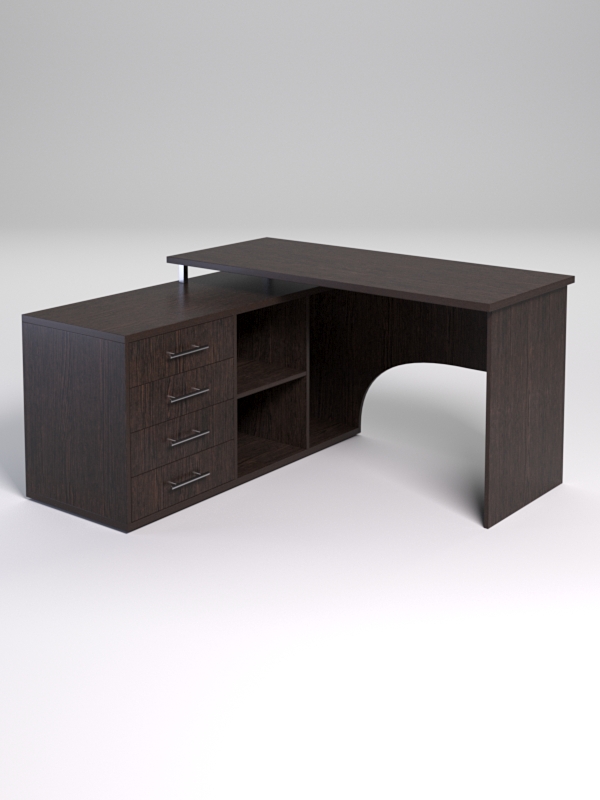 Офисный компьютерный стол подойдет для организации рабочего места оператора, менеджера, делопроизводителя, секретаря. Универсальная конструкция стола позволяет использовать его для письменных работ, а также для размещения офисной техники. Стол оборудован тумбой с отделениями под системный блок, секциями для хранения и четырьмя выдвижными ящиками.