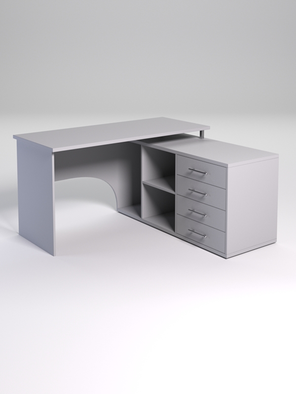 Офисный компьютерный стол подойдет для организации рабочего места оператора, менеджера, делопроизводителя, секретаря. Универсальная конструкция стола позволяет использовать его для письменных работ, а также для размещения офисной техники. Стол оборудован тумбой с отделениями под системный блок, секциями для хранения и четырьмя выдвижными ящиками.