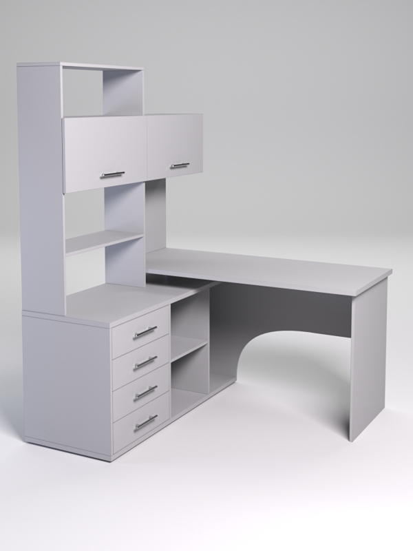 Офисный компьютерный стол подойдет для организации рабочего места оператора, менеджера, делопроизводителя, секретаря. Универсальная конструкция стола позволяет использовать его для письменных работ, а также для размещения офисной техники и хранения документов. Стол оборудован тумбой с отделениями под системный блок, секциями для хранения и четырьмя выдвижными ящиками. Сверху имеется надстройка с полками и двумя шкафчиками.