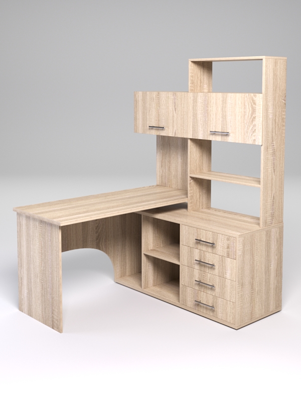 Офисный компьютерный стол подойдет для организации рабочего места оператора, менеджера, делопроизводителя, секретаря. Универсальная конструкция стола позволяет использовать его для письменных работ, а также для размещения офисной техники и хранения документов. Стол оборудован тумбой с отделениями под системный блок, секциями для хранения и четырьмя выдвижными ящиками. Сверху имеется надстройка с полками и двумя шкафчиками.