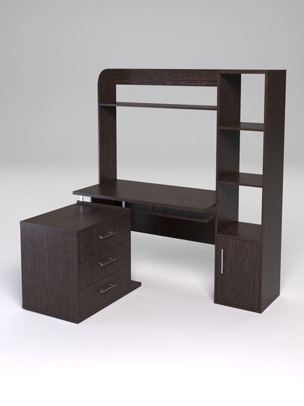 Офисный компьютерный стол подойдет для организации рабочего места оператора, менеджера, делопроизводителя, секретаря. Универсальная конструкция стола позволяет использовать его для письменных работ, а также для размещения офисной техники и хранения документов. Стол оборудован тумбой с тремя выдвижными ящиками и подставкой под системный блок, полкой под клавиатуру, стеллажом и надстройкой.