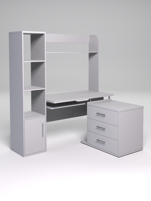 Офисный компьютерный стол подойдет для организации рабочего места оператора, менеджера, делопроизводителя, секретаря. Универсальная конструкция стола позволяет использовать его для письменных работ, а также для размещения офисной техники и хранения документов. Стол оборудован тумбой с тремя выдвижными ящиками и подставкой под системный блок, полкой под клавиатуру, стеллажом и надстройкой.
