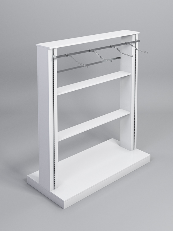 Гондола предназначена для демонстрации одежды в развешенном виде. Благодаря особой конструкции, гондола является прочной и устойчивой. Это позволяет располагать на ней, как легкие вещи, так и демисезонную одежду.