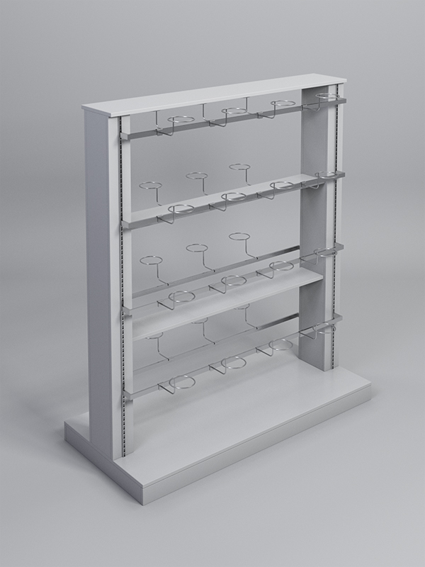 Гондола представляет из себя П-образную конструкцию, выполненную из ЛДСП, на каркасе из металлических перфорированных Т-образных стоек. По 4 штанги с двух сторон с кронштейнами для головных уборов.