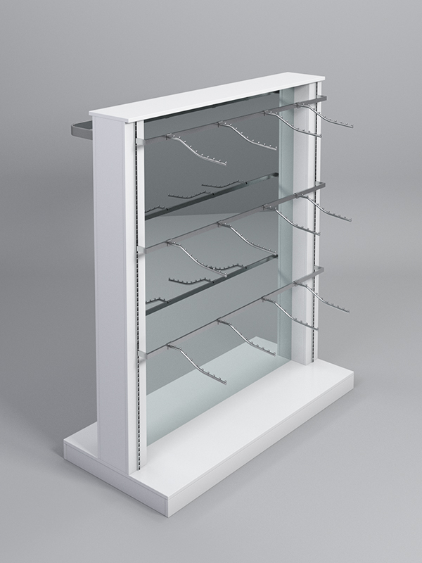 Гондола представляет из себя П-образную конструкцию, выполненную из ЛДСП, на каркасе из металлических перфорированных Т-образных стоек, между которыми расположено двустороннее зеркало.С одной стороны располагаются три яруса штанг с кронштейнами, а с другой штанага для плечиков под одежду и аксессуары.