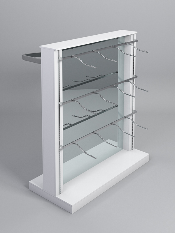 Гондола представляет из себя П-образную конструкцию, выполненную из ЛДСП, на каркасе из металлических перфорированных Т-образных стоек, между которыми расположено двустороннее зеркало.С одной стороны располагаются три яруса штанг с кронштейнами, а с другой изогнутая штанага для плечиков под одежду и аксессуары.