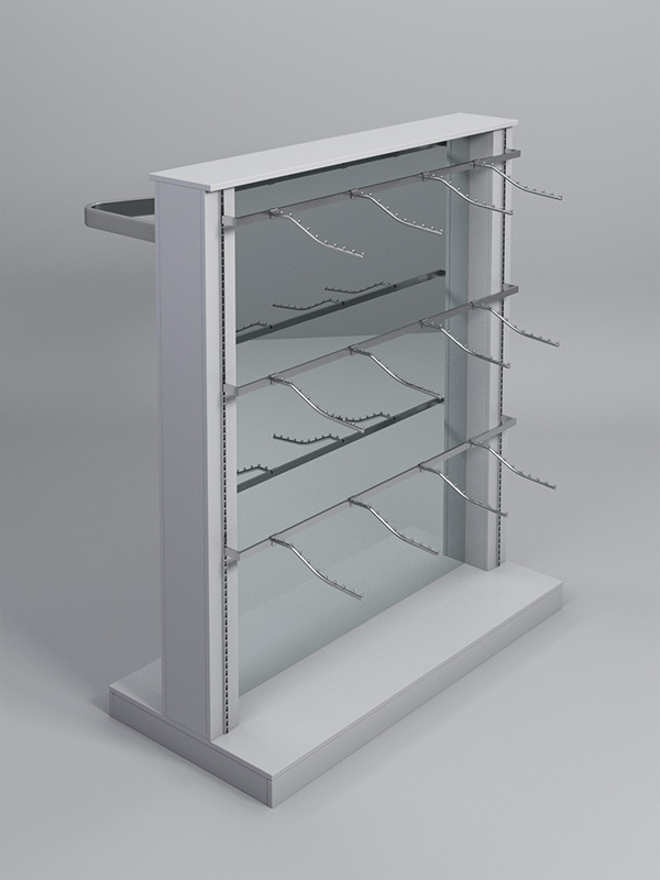 Гондола представляет из себя П-образную конструкцию, выполненную из ЛДСП, на каркасе из металлических перфорированных Т-образных стоек, между которыми расположено двустороннее зеркало.С одной стороны располагаются три яруса штанг с кронштейнами, а с другой изогнутая штанага для плечиков под одежду и аксессуары.