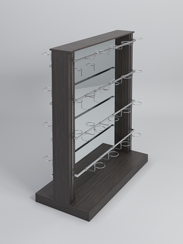 Гондола представляет из себя П-образную конструкцию, выполненную из ЛДСП, на каркасе из металлических перфорированных Т-образных стоек, между которыми расположено двустороннее зеркало.По 4 штанги с двух сторон с кронштейнами для головных уборов.