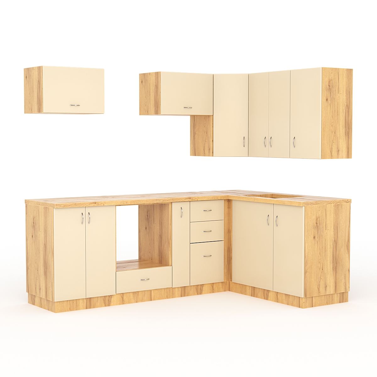 Кухонный гарнитур со столешницей 38мм №4, Дуб Золотистый и Крем Вайс