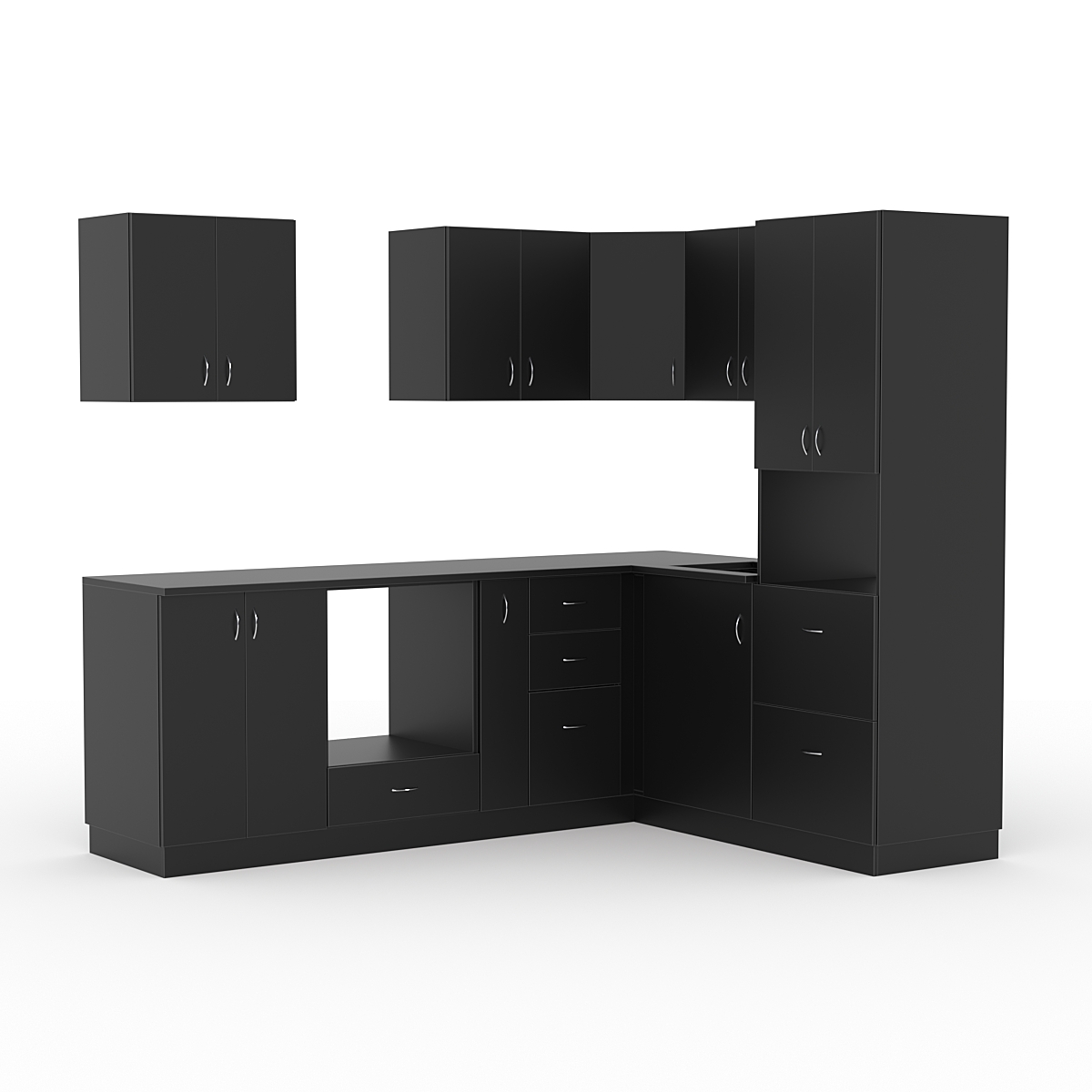В конструкции можно разместить раковину, плиту, микроволновку и имеется пространство для вытяжки.