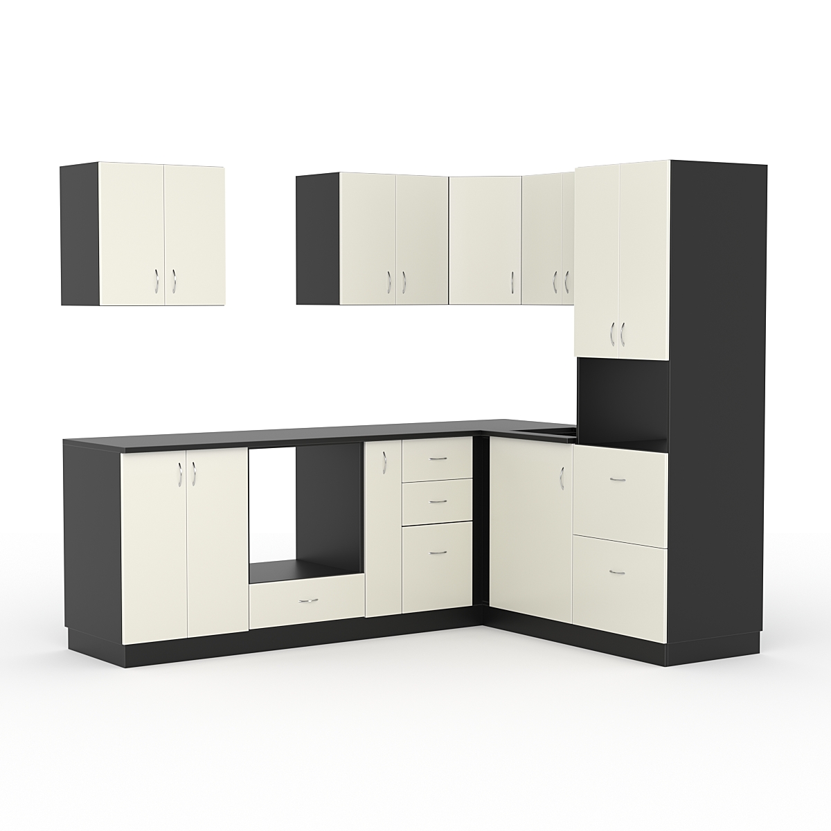 Оснащена ящиками. Ящики в кухонной гарнитуре используются для хранения посуды, кухонных принадлежностей и других предметов, которые могут понадобиться при приготовлении пищи.