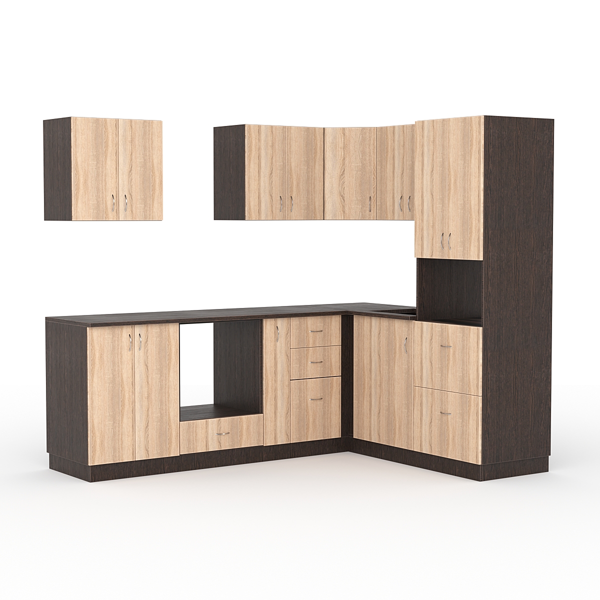 В конструкции можно разместить раковину, плиту, микроволновку и имеется пространство для вытяжки.