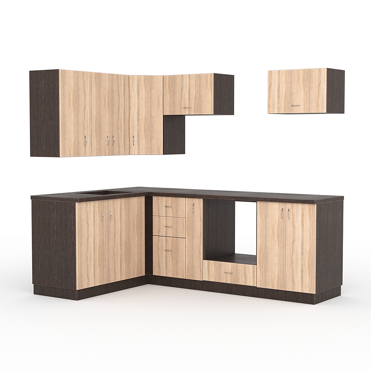Кухонная гарнитура со столешницей — это комплект мебели для кухни, который включает в себя нижние и верхние шкафы, а также рабочую поверхность (столешницу). Размещается в углу. Столешница является важной частью кухонной гарнитуры, так как она служит рабочей поверхностью для приготовления пищи. Оборудование позволяет организовать пространство кухни, создать удобную рабочую зону и место для хранения посуды, продуктов и кухонных принадлежностей. Кухонная гарнитура используется для обустройства кухни в жилых домах, квартирах, офисах и других помещениях, где есть необходимость в приготовлении пищи.