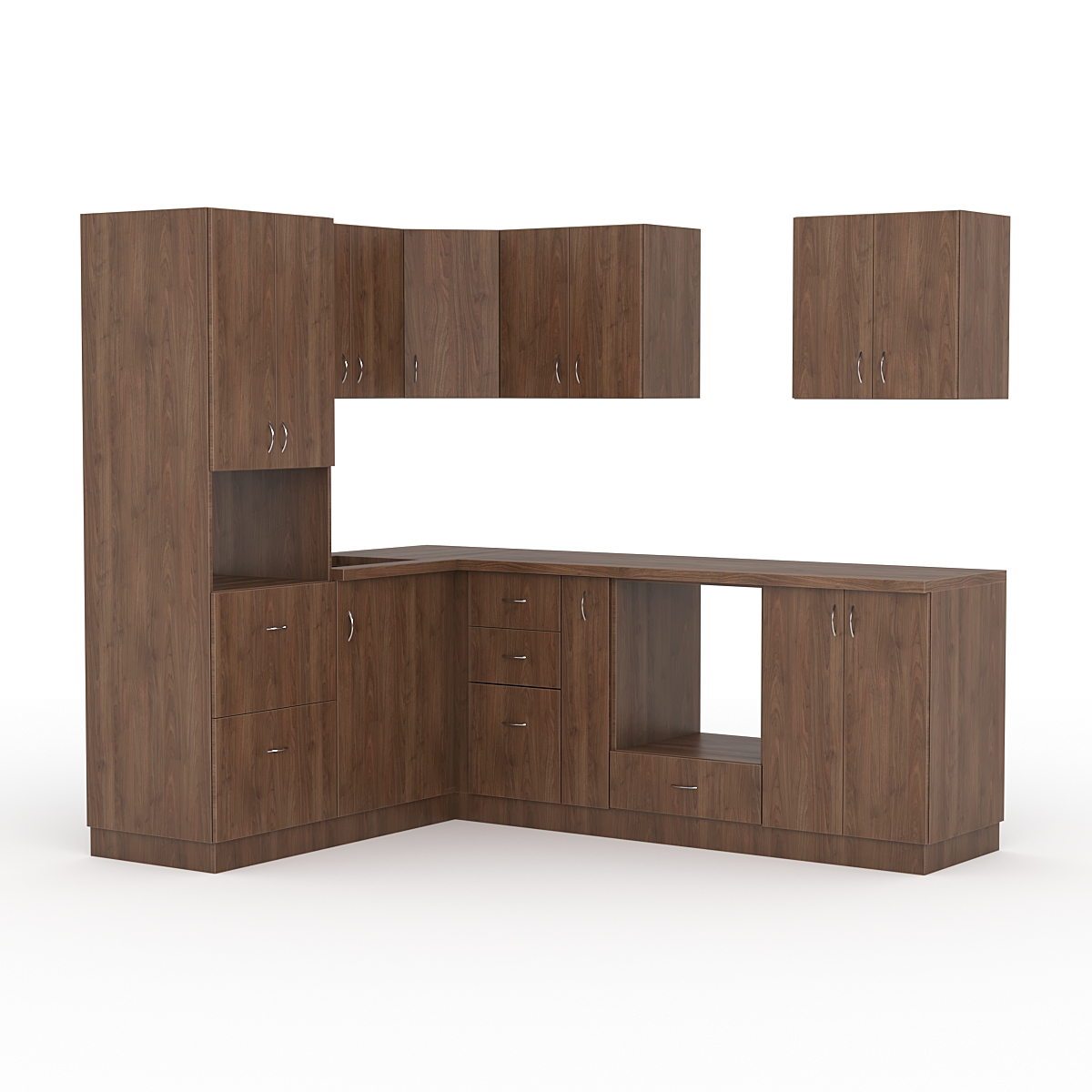 Система оснащена ящиками. Ящики в кухонной гарнитуре используются для хранения посуды, кухонных принадлежностей и других предметов, которые могут понадобиться при приготовлении пищи.