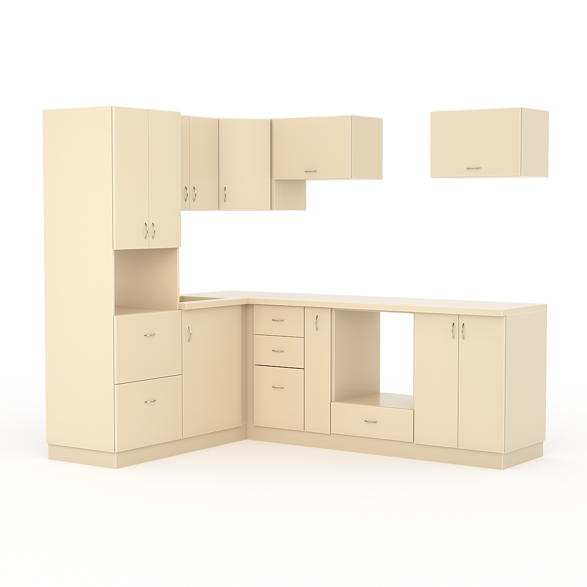 Кухонная гарнитура со столешницей — это комплект мебели для кухни, который включает в себя нижние и верхние шкафы, а также рабочую поверхность (столешницу). Размещается в углу. Столешница является важной частью кухонной гарнитуры, так как она служит рабочей поверхностью для приготовления пищи. Оборудование позволяет организовать пространство кухни, создать удобную рабочую зону и место для хранения посуды, продуктов и кухонных принадлежностей. Кухонная гарнитура используется для обустройства кухни в жилых домах, квартирах, офисах и других помещениях, где есть необходимость в приготовлении пищи.