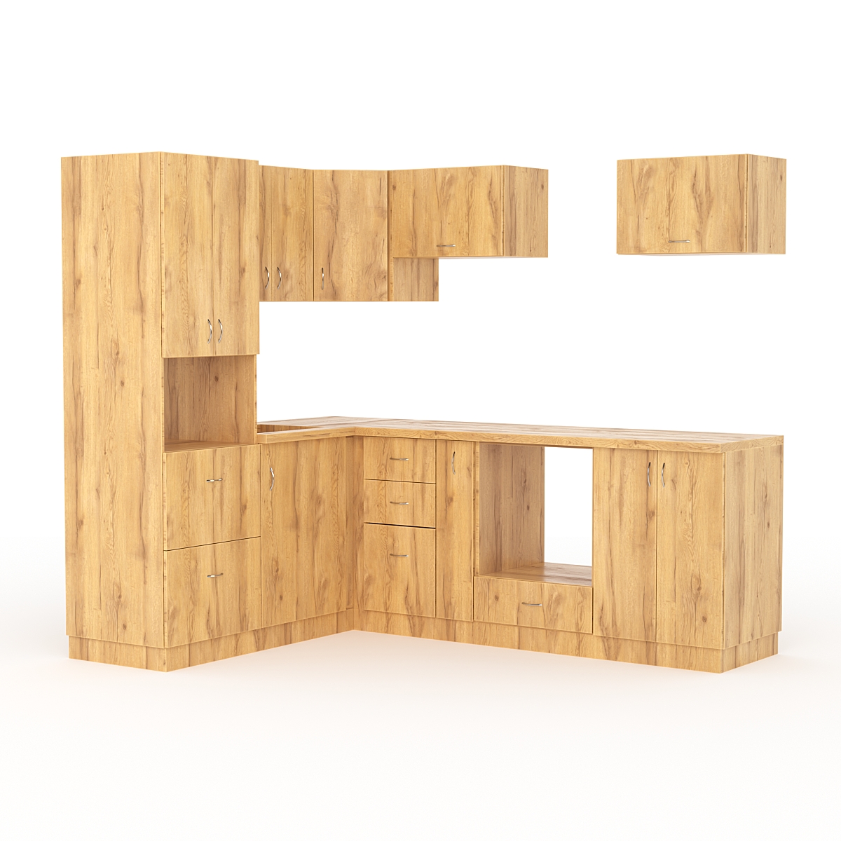 Кухонная гарнитура со столешницей — это комплект мебели для кухни, который включает в себя нижние и верхние шкафы, а также рабочую поверхность (столешницу). Размещается в углу. Столешница является важной частью кухонной гарнитуры, так как она служит рабочей поверхностью для приготовления пищи. Оборудование позволяет организовать пространство кухни, создать удобную рабочую зону и место для хранения посуды, продуктов и кухонных принадлежностей. Кухонная гарнитура используется для обустройства кухни в жилых домах, квартирах, офисах и других помещениях, где есть необходимость в приготовлении пищи.