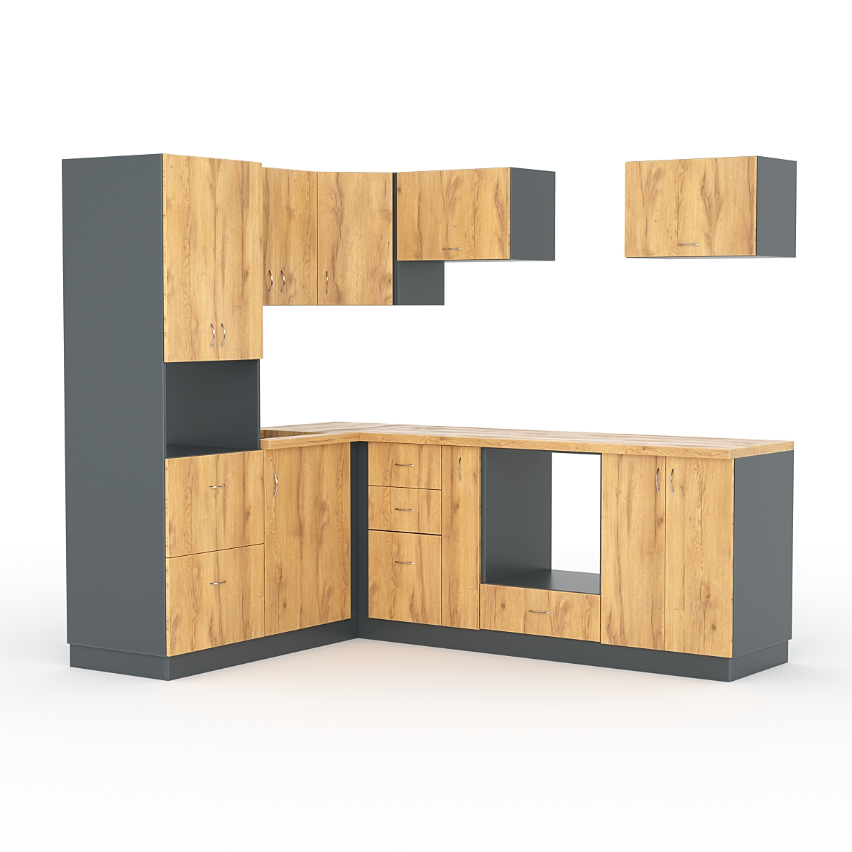 Кухонная гарнитура со столешницей — это комплект мебели для кухни, который включает в себя нижние и верхние шкафы, а также рабочую поверхность (столешницу). Размещается в углу. Столешница является важной частью кухонной гарнитуры, так как она служит рабочей поверхностью для приготовления пищи. Оборудование позволяет организовать пространство кухни, создать удобную рабочую зону и место для хранения посуды, продуктов и кухонных принадлежностей. Кухонная гарнитура используется для обустройства кухни в жилых домах, квартирах, офисах и других помещениях, где есть необходимость в приготовлении пищи.