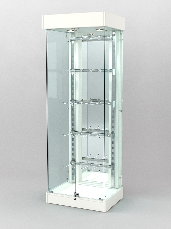 Витрины серии «КАЛЛИСТА» разработаны специально для демонстрации и продажи хрупких товаров, таких как елочные игрушки, хрустальные сувениры. Также хорошо используются в салонах связи, на крючках можно развесить телефонные аксессуары, такие как: чехлы, зарядки, экраны-самоклейки и прочие. Горизонтальные перекладины легко переставляются по высоте витрины, крючки также легко перемещаются вправо, либо влево по поверхности перекладин. Крючки уже входят в стоимость витрины.