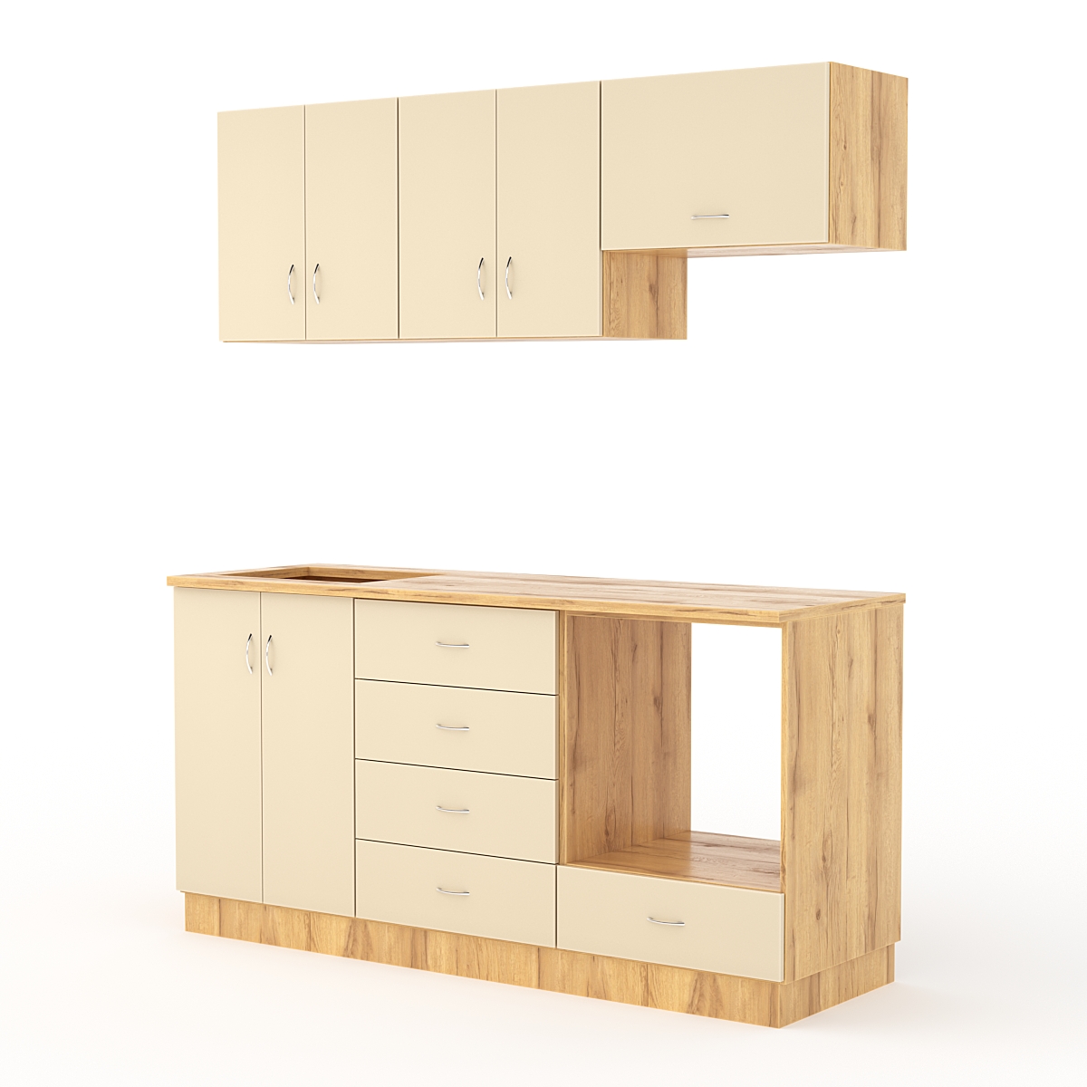 Кухонный гарнитур со столешницей 25мм №2А, Дуб Золотистый и Крем Вайс