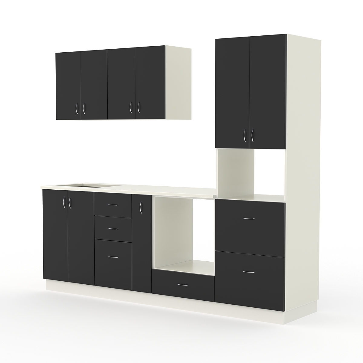 В конструкции можно разместить раковину, плиту и микроволновку.