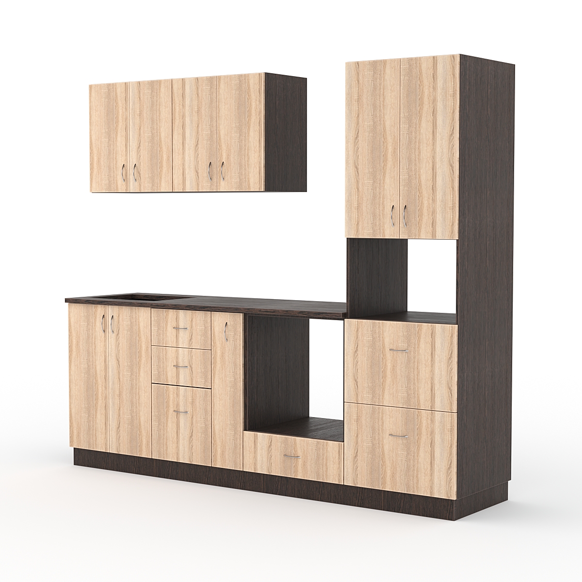 В конструкции можно разместить раковину, плиту и микроволновку.