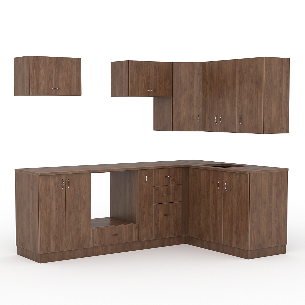 В конструкции можно разместить раковину, плиту и имеется пространство для вытяжки.