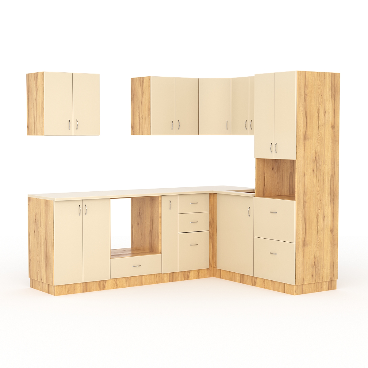 Кухонный гарнитур со столешницей 25мм №5A, Дуб Золотистый и Крем Вайс