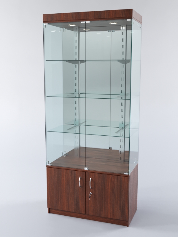 Витрина ХАЙТЕК КВАДРО №1-2 (задняя стенка — зеркало), Орех