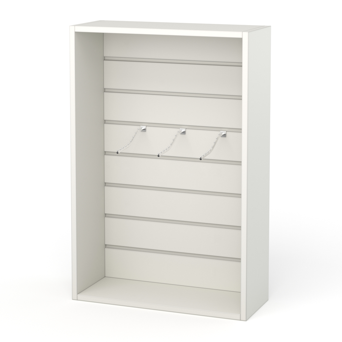 Модуль кассового стола. Модуль с полками используется для хранения товаров в магазине. Он позволяет удобно разместить товары на полках и обеспечивает их сохранность. Кроме того, модуль с полками может использоваться для демонстрации товаров покупателям, что способствует увеличению продаж. Модуль оснащен тремя кронштейнами.