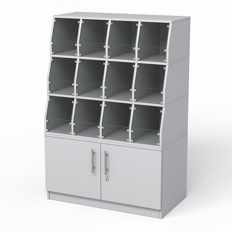 Стеллаж для конфет, орехов и сухофруктов — это конструкция, предназначенная для хранения и демонстрации этих продуктов в магазине. Имеется двенадцать полок для хранения продуктов. Материал — ЛДСП и стекло.