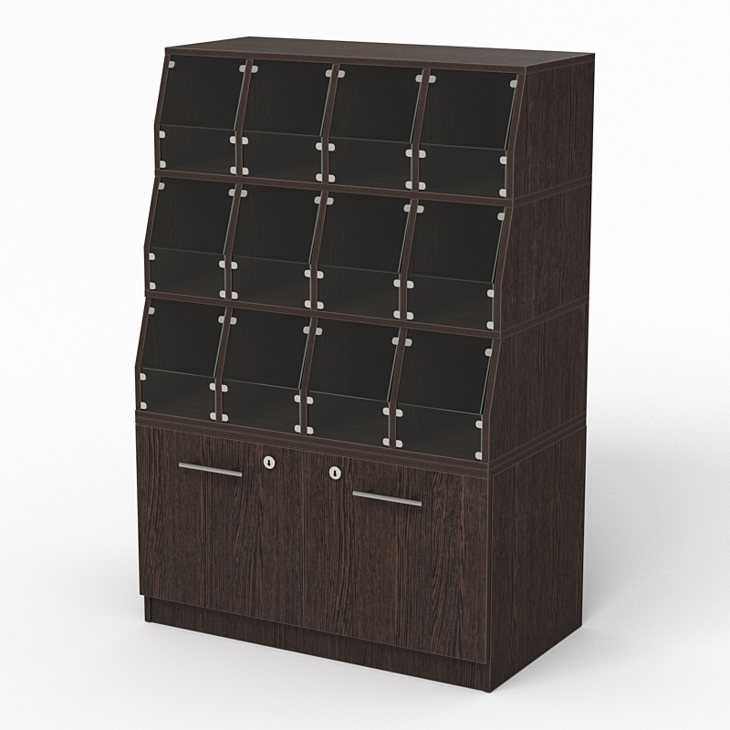 Стеллаж для конфет, орехов и сухофруктов — это конструкция, предназначенная для хранения и демонстрации этих продуктов в магазине. Имеется двенадцать полок для хранения продуктов. В нижней части имеется две выдвижные полки.