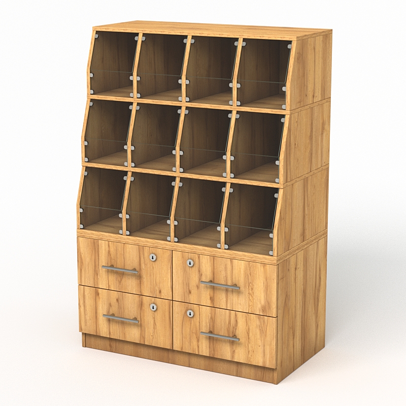 Стеллаж для конфет, орехов и сухофруктов — это конструкция, предназначенная для хранения и демонстрации этих продуктов в магазине. Имеется двенадцать полок для хранения продуктов. В нижней части конструкция оснащена четырьмя выдвижными полками.