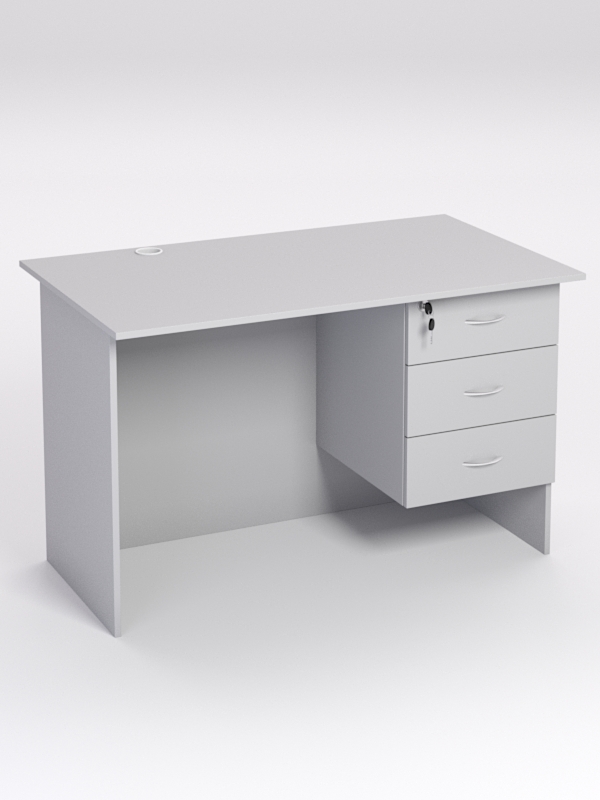 Стол однотумбовый левосторонний состоит из 2х элементов: стола и тумбы. Тумба расположена с правой стороны от сотрудника. В ней предусмотрено 3 ящика, верхний ящик закрывается на замок. Инструкция по сборке не требуется.