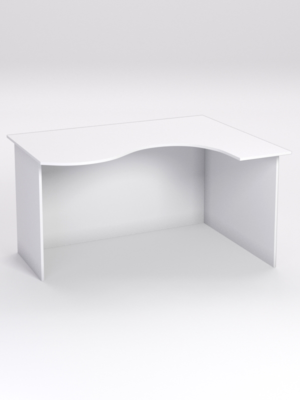 Стол состоит из 4х деталей, которые скрепляются между собой конфирматами и мебельными уголками. Столешница имеет фигурный вырез со стороны работника. Инструкция по сборке не требуется.