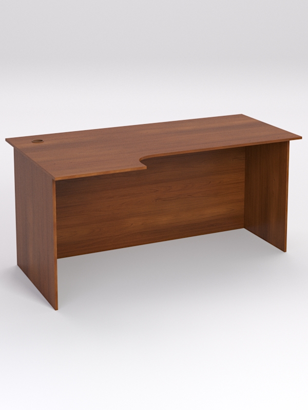 Стол состоит из 4х деталей, которые скрепляются между собой конфирматами и мебельными уголками. Столешница имеет фигурный вырез со стороны работника. Инструкция по сборке не требуется.