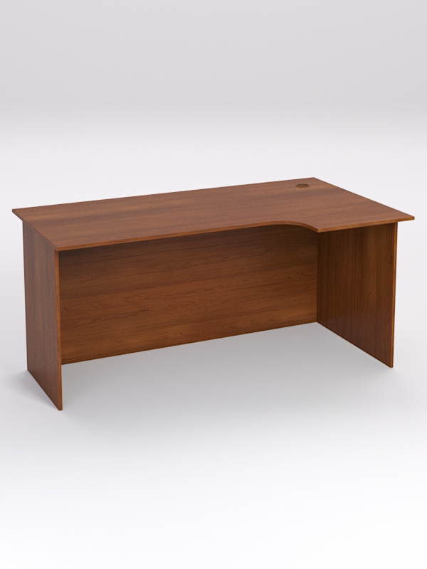 Стол состоит из 4х деталей, которые скрепляются между собой конфирматами и мебельными уголками. Столешница имеет фигурный вырез со стороны работника. Инструкция по сборке не требуется.