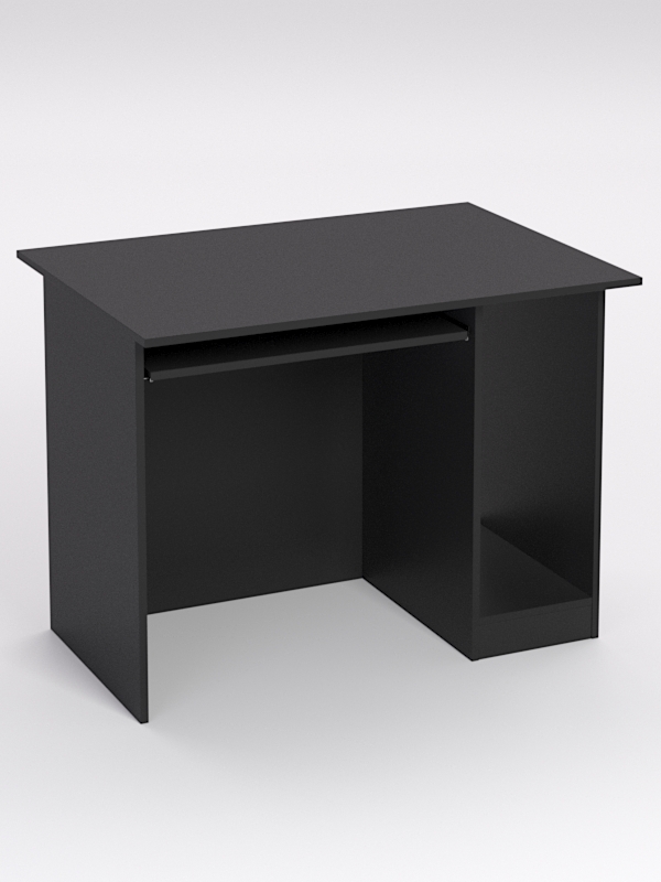 В столе с правой стороны предусмотрено место для системного блока. Нижняя столешница выдвижная, направляющие — шариковые. Инструкция по сборке не требуется.