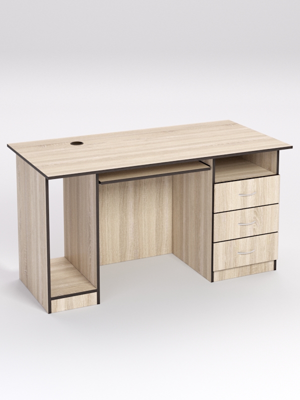 В столе с левой стороны предусмотрено место для системного блока, справа расположена тумба с 3мя выдвижными ящиками для документов. Нижняя столешница выдвижная, направляющие — шариковые. Инструкция по сборке не требуется.