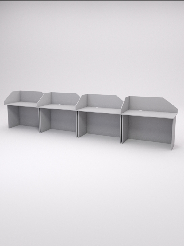 Широко используется в офисных помещениях в качестве рабочего места сотрудника организации. Экран — надстройка сверху столешницы, позволяет обособить личное пространство каждого сотрудника. Столы, составленные в ряд, создают единый офисный ансамбль, который отлично смотрится как в Бизнес-центрах класса А, В, С.