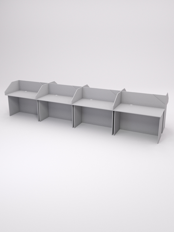 Широко используется в офисных помещениях в качестве рабочего места сотрудника организации. Экран — надстройка сверху столешницы, позволяет обособить личное пространство каждого сотрудника. Столы, составленные в ряд, создают единый офисный ансамбль, который отлично смотрится как в Бизнес-центрах класса А, В, С.