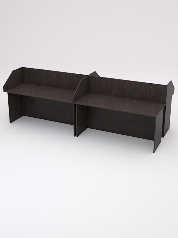Широко используется в офисных помещениях в качестве рабочего места сотрудника организации. Экран — надстройка сверху столешницы, позволяет обособить личное пространство каждого сотрудника. Столы, составленные в ряд, создают единый офисный ансамбль, который отлично смотрится как в Бизнес-центрах класса А, В, С.