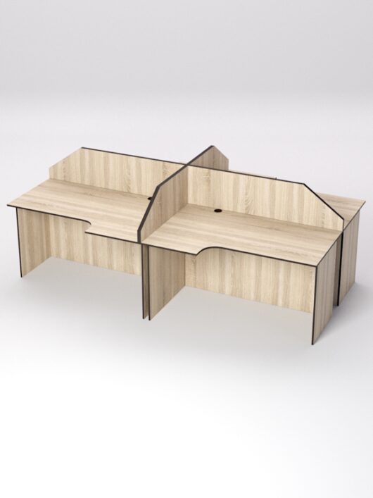 Широко используется в офисных помещениях в качестве рабочего места сотрудника организации. Экран — надстройка сверху столешницы, позволяет обособить личное пространство каждого сотрудника. Столы, составленные в ряд, создают единый офисный ансамбль, который отлично смотрится в Бизнес-центрах класса А, В, С.