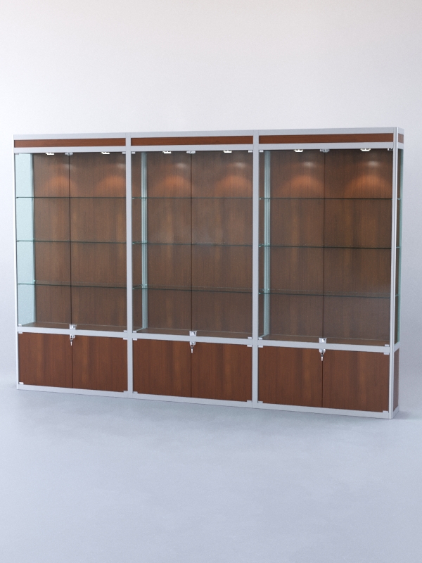 Распашные стеклянные дверки с замком в верхней секции;