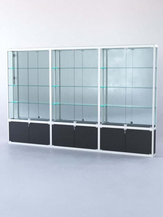 Витрина "ПРЯМОУГОЛЬНАЯ" №2-3м-200-3 (задняя стенка — зеркало), Черный и Белый