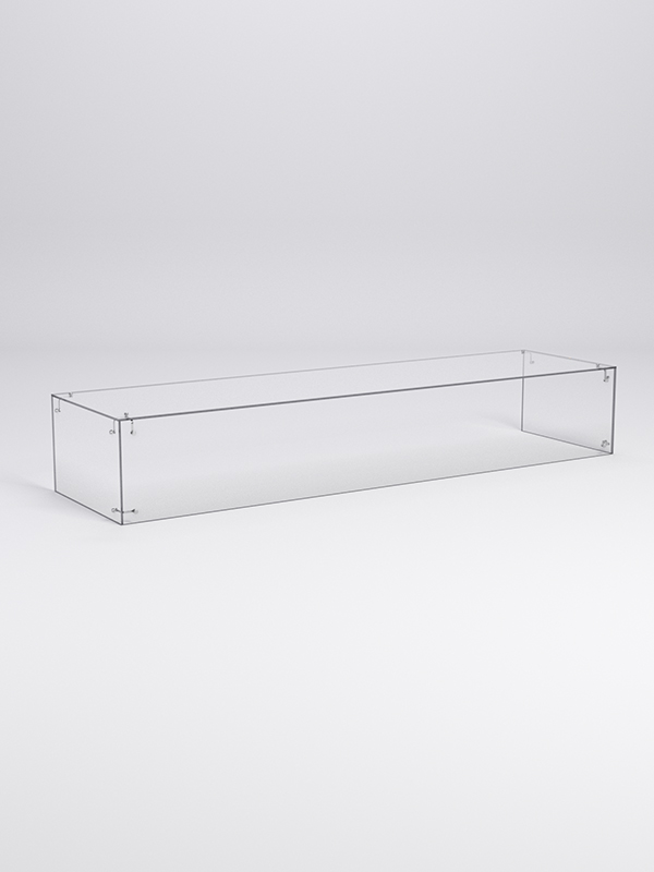Витрина полностью стеклянная.