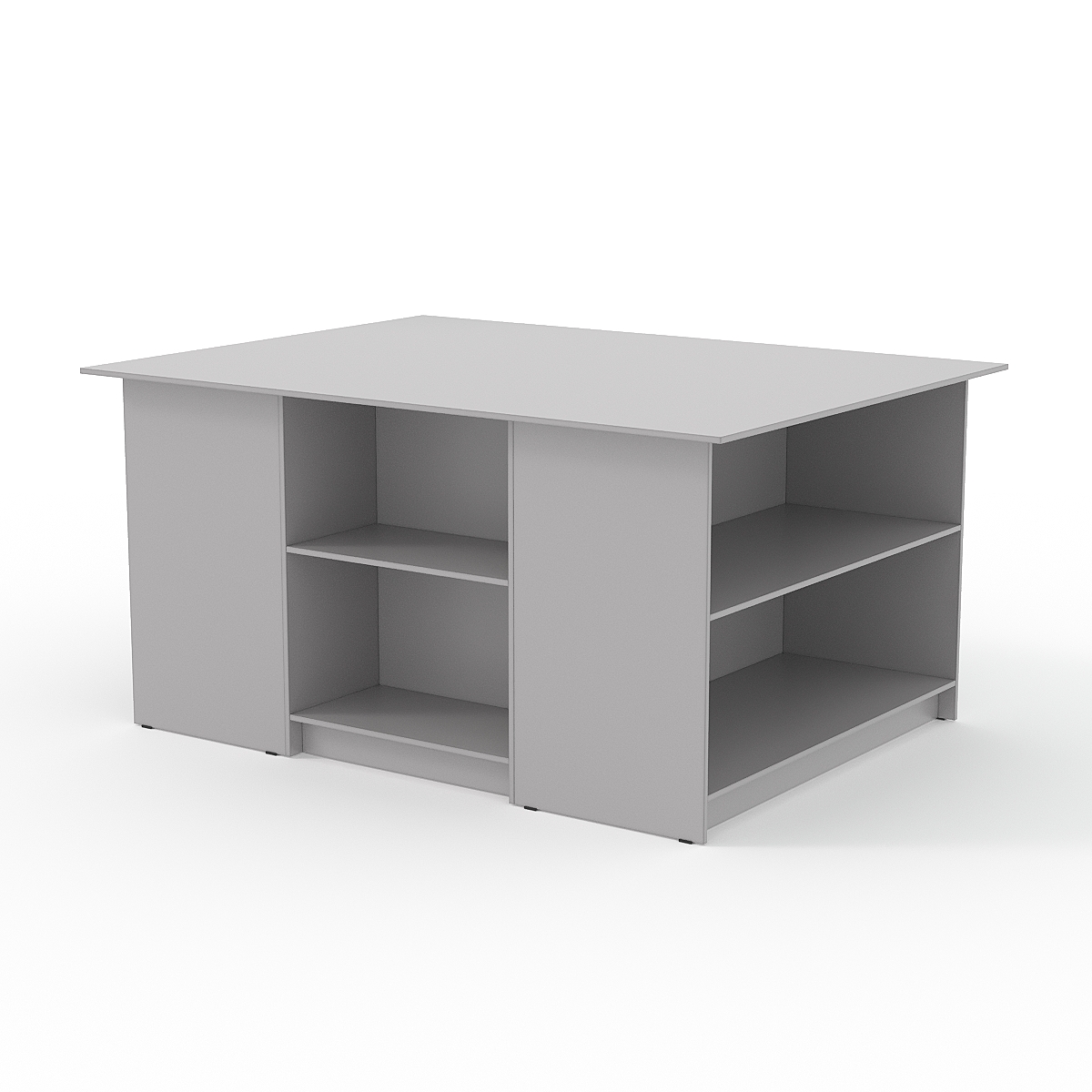 Прочная устойчивая конструкция выполнена из ЛДСП. Стол имеет несколько отделений с полками, расположенные с разных сторон.