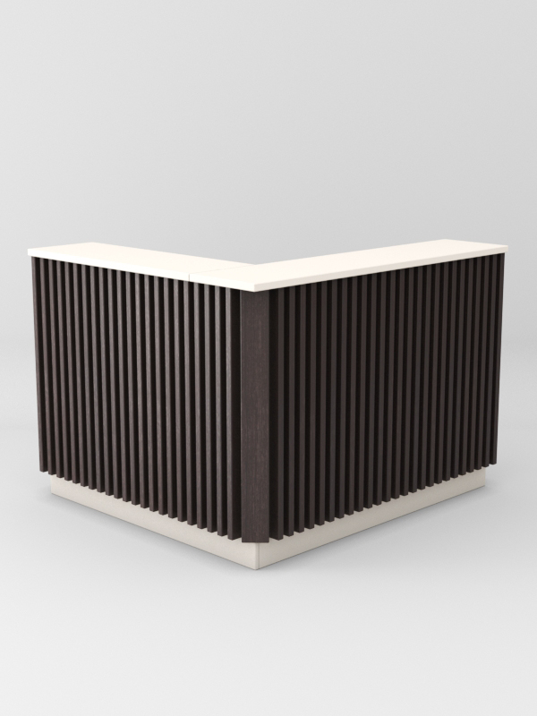 Стойка-ресепшн необходима, независимо от того, как устроен ваш павильон. Если он расположен в помещении, то к стойке можно купить стулья, чтобы посетитель мог немного отдохнуть и попить кофе в спокойной обстановке. Также торговая стойка выступает своеобразным столом для взаимодействия с клиентом, размещения кассового оборудования.